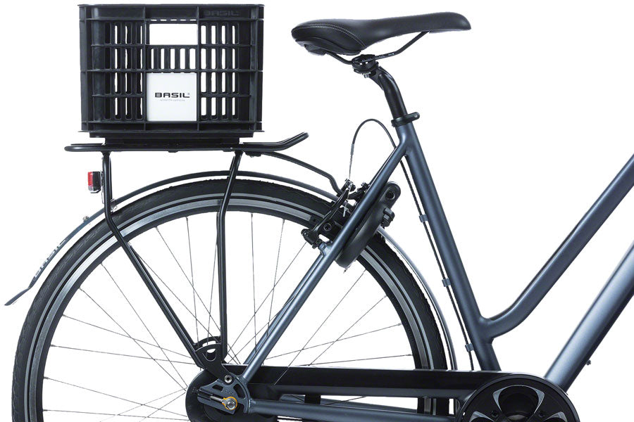 Basil Bicycle Crate S 17.5L Recycled Synthetic Black. If you’re always out and about on your bike you’ll need a bicycle crate that can withstand everyday wear and tear. The Basil Crate is just the ticket. Hard-wearing materials and a sturdy construction ensure it’ll hold up well against tough rides and all-weather adventures. Affix the Crate permanently to your rack or add the MIK system plates (sold separately) to allow easy mounting and removal.Compatible with MIK and Racktime mounting plates (sold separately)