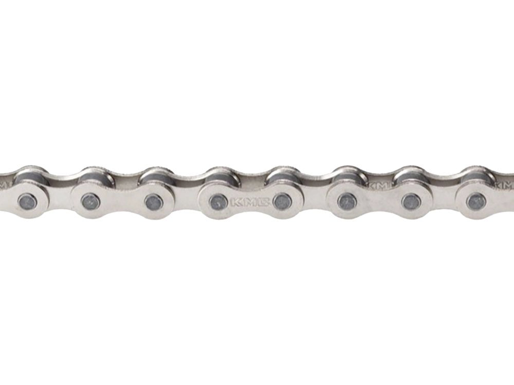 KMC S1 Chain - Single Speed 1/2" x 1/8" 112 Links Silver. The KMC S1 is a single-speed chain suitable for use with internally geared hubs or any single speed drivetrain. High pin power with reinforced durability. Offers a quieter riding experience. Anti-drop design. Internal gear hub system compatible