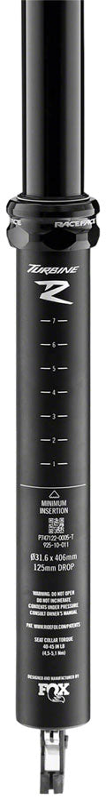 RaceFace Turbine R Dropper Seatpost - 30.9 125mm Travel Black. The Turbine R dropper brings you the function and reliability you deserve with Race Face aesthetics to complete your build.