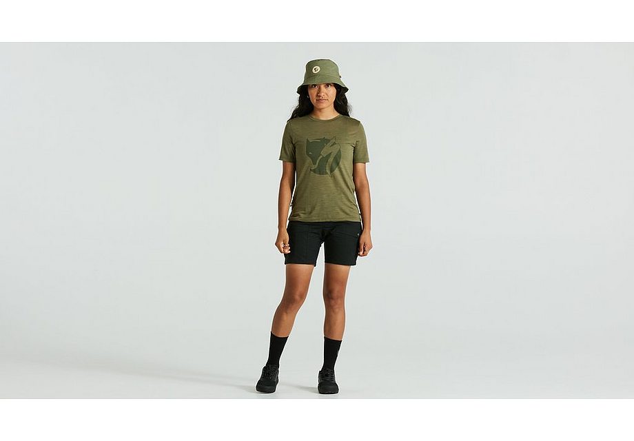 Versatile, comfortable shorts in G-1000 Lite Eco Stretch that can be waxed for enhanced wid- and water- resistance. Optimized for bike riding with a hybrid waist—the built-up waistband has no front seam and is elasticated at the back for more comfort on longer bike rides. The inside of the waistband is faced with mesh for comfort and the effective transport of moisture away from the skin. Secure zippered hand pockets and thigh pockets with snap buttons. Reflective details on inside of hems, fold up the cuffs to expose them for more visibility. Reinforced gusset. Part of the Specialized/Fjällräven series for urban rides and bikepacking adventures.