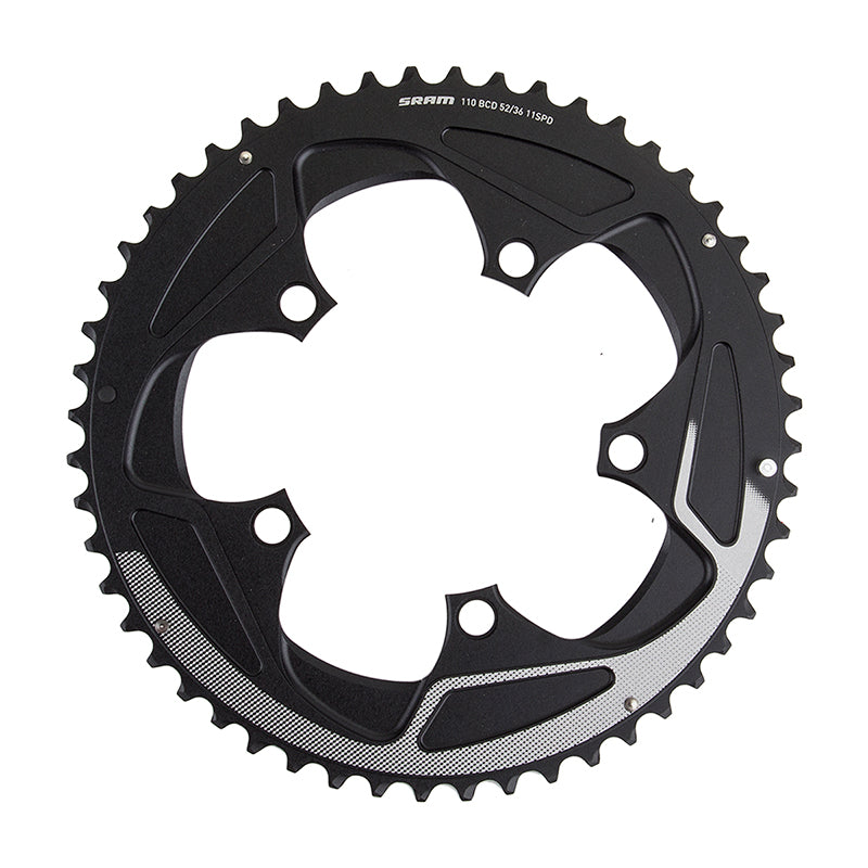 SRAM 52 Tooth 11-Speed 110mm BCD Yaw Chainring Black with Silver Trim Use with 36 or 38T. Top quality design and materials in sizes to fit modern road and cross bikes.7000 series aluminum provides strength and durability
