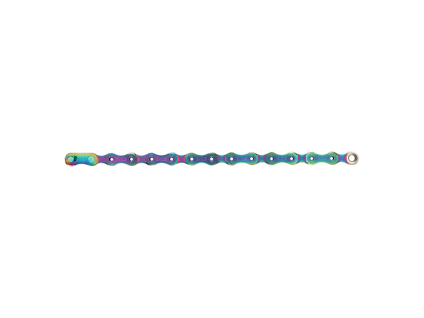 SRAM XX1 Eagle AXS Chain - 12-Speed 126 Links Rainbow. The SRAM XX1 Eagle AXS 12-speed chain is a high-performance lightweight chain that features a unique design for significantly improved wear resistance on Eagle cassettes and rings.Eagle chain links have a smooth radius with no sharp edges or chamfers which yields a significant reduction in noise friction and wear